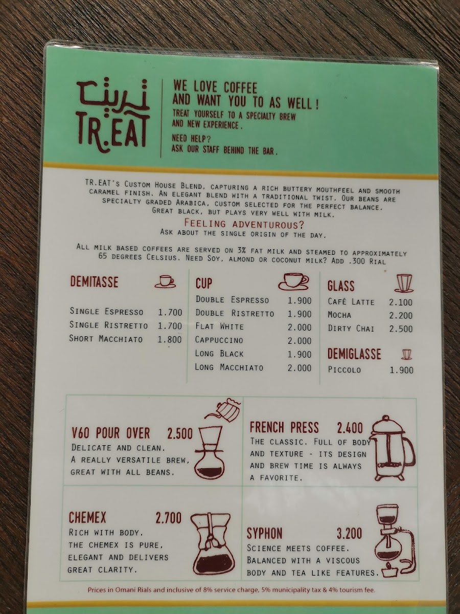 In the words of Lamyaa Al Harrasi, who raved about the coconut cappuccino being one of the best she's ever had, Tr.Eat Cafe is undeniably a place that beckons you to return. The cozy atmosphere, combined with the excellent drink selection and delectable pastries, truly makes it a gem in the heart of Muscat.
